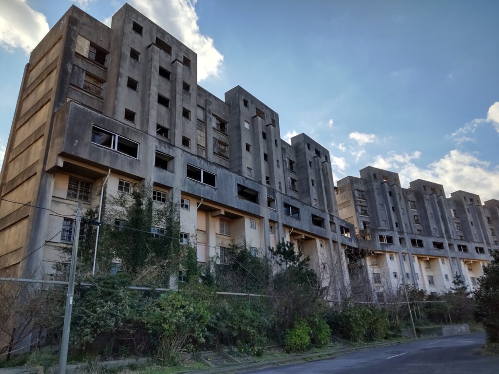 長崎県にある「池島」は、かつて炭鉱の閉山が行われたばかりの平成13年まで、海底炭鉱を中心に活気に満ちていた。しかし、炭鉱閉山後も島には人々が残り、廃墟としてだけでなく住居としても利用されている。島全体が一つの廃墟ともいえるが、かつての炭鉱の跡が至る所に見られる。鉱山用の建物や機械類、炭鉱夫たちの住居跡など、当時の様子が島の風景として残されている。また、島の周囲には、広大な海と荒涼とした自然が広がり、不思議な魅力を持つ場所として知られている。