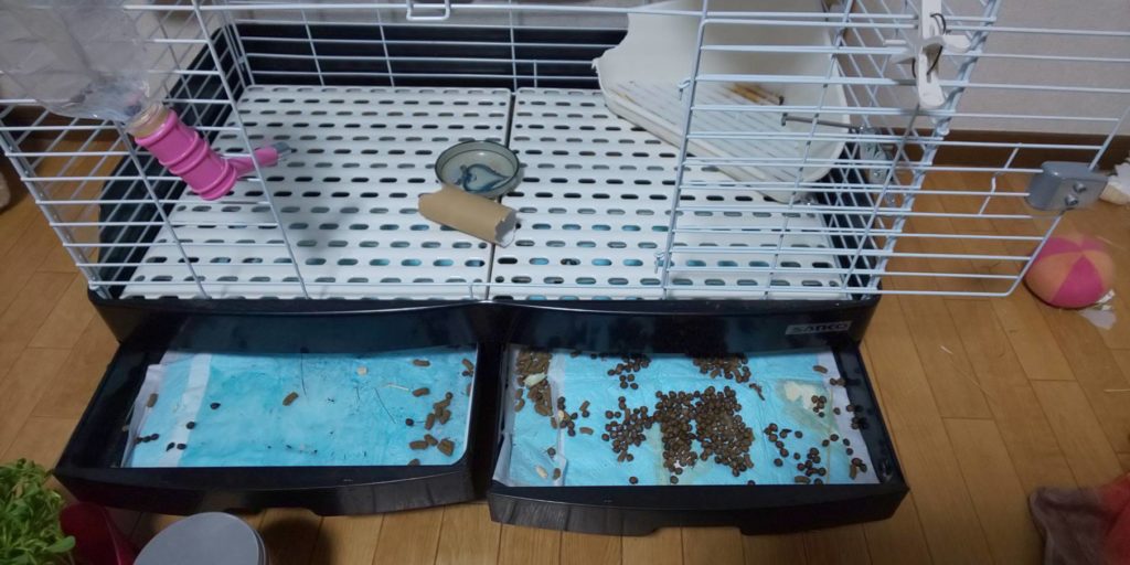 おかげでケージの掃除がかなり楽になりました・・・今までスノコの下はほとんど糞とまだ食べれそうなチモシーで溢れそうになっていたので・・・