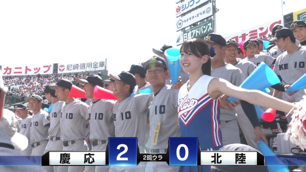 なお慶應高校は今大会の出場校の中で唯一の男子校で、チアリーダーは系列校である東京・慶應義塾女子高校の生徒が担当している。