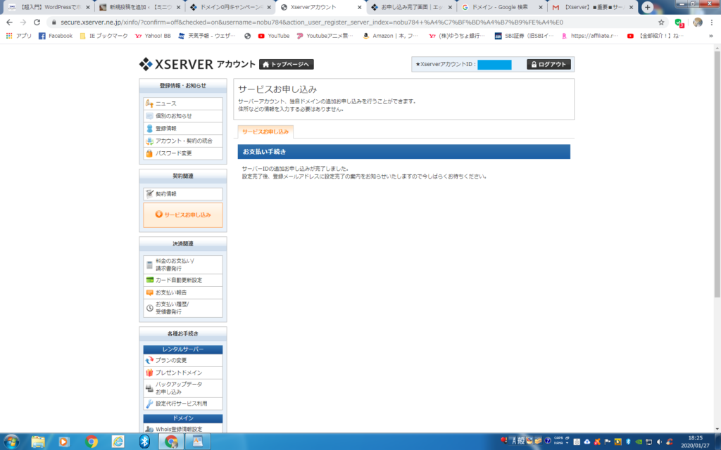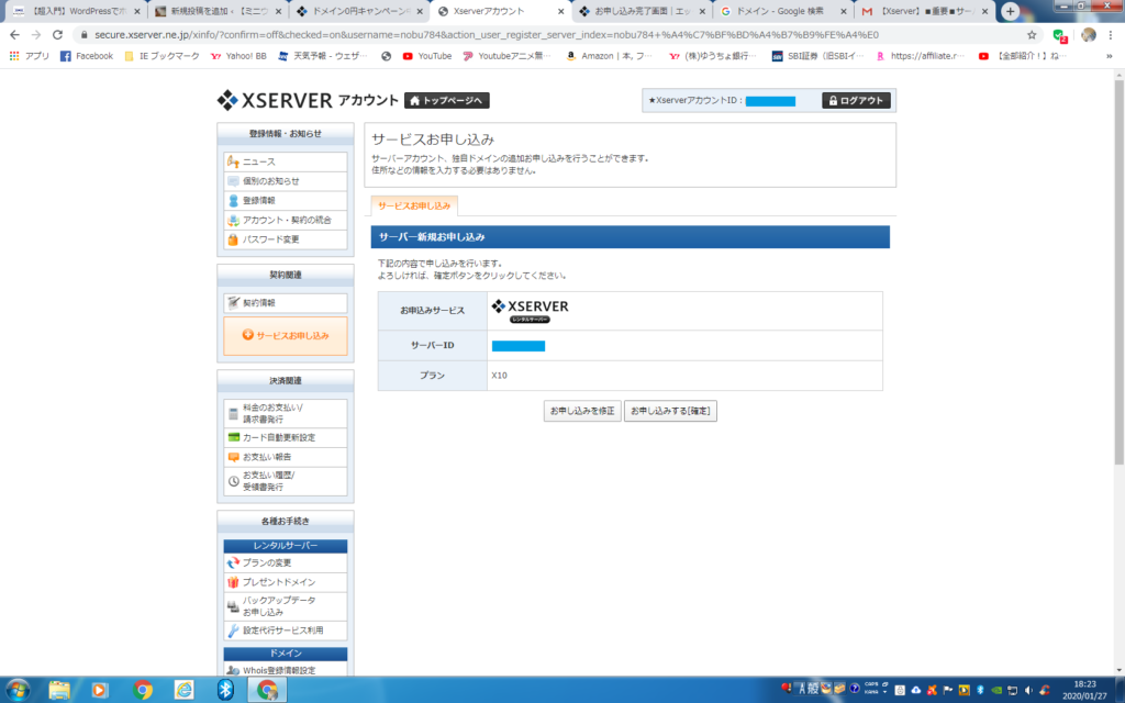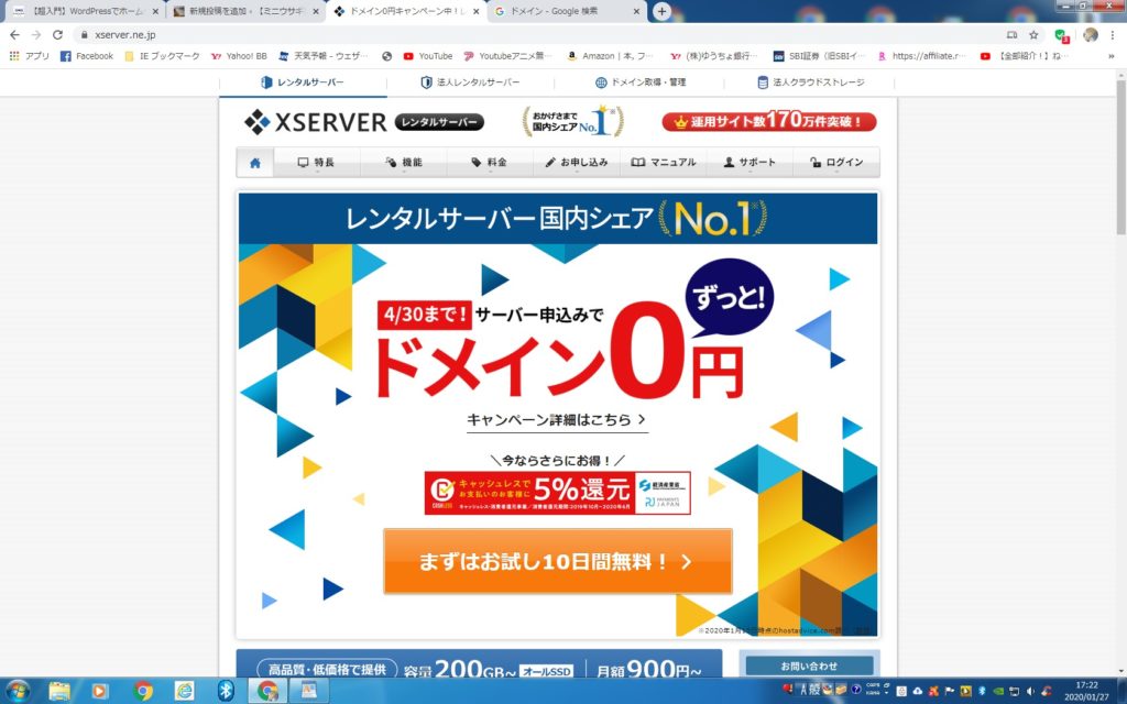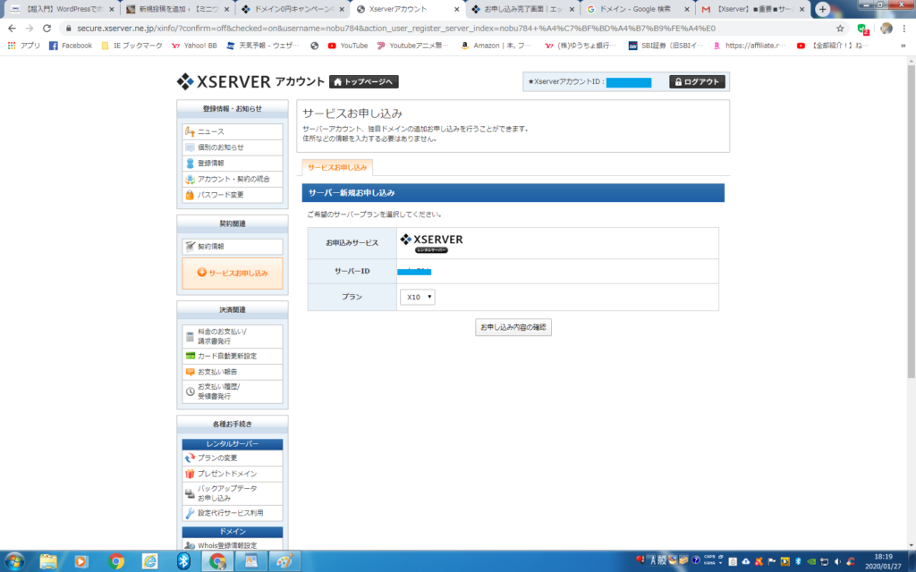 ここまでがサーバーとの無料10日間契約です。