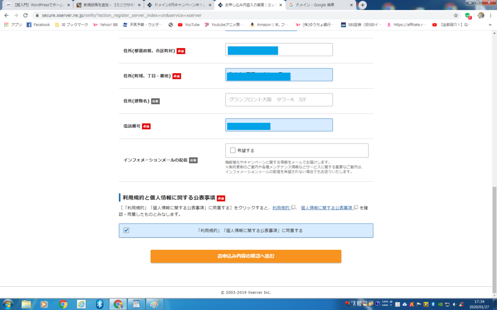 ⑦赤枠内を書き込んで確認画面へ進む
