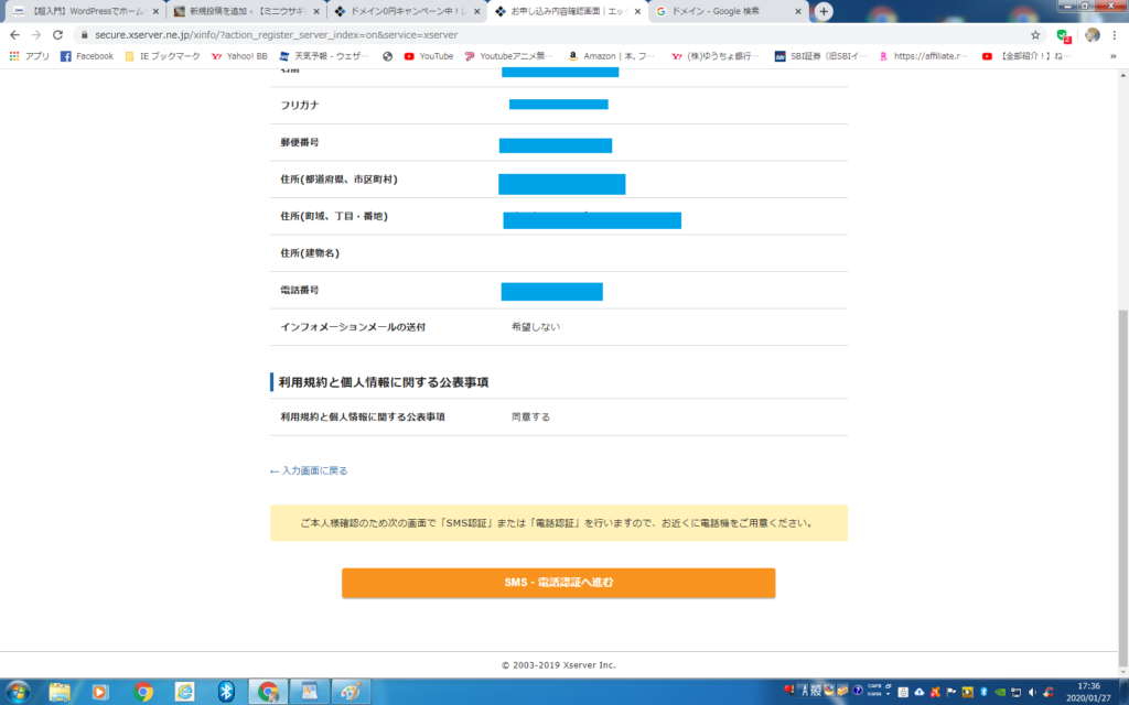 ⑥SMS・電話認証へ進む