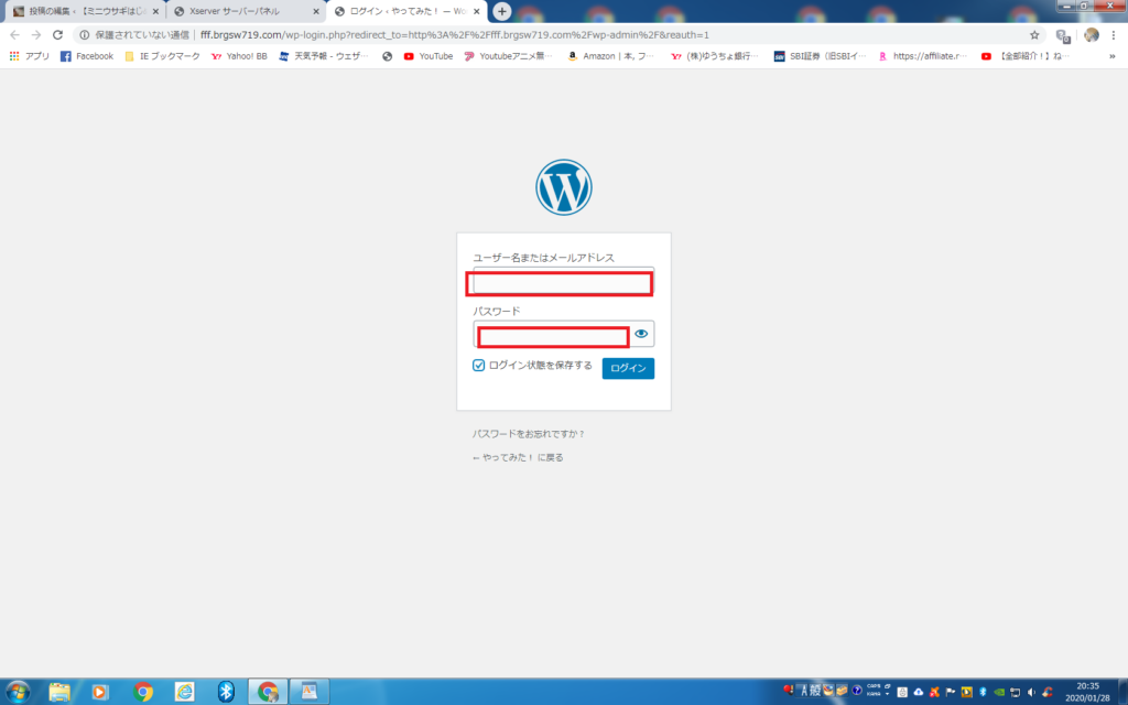 ⑤Wordpressのログイン画面になる ここにユーザー名・パスワード入力