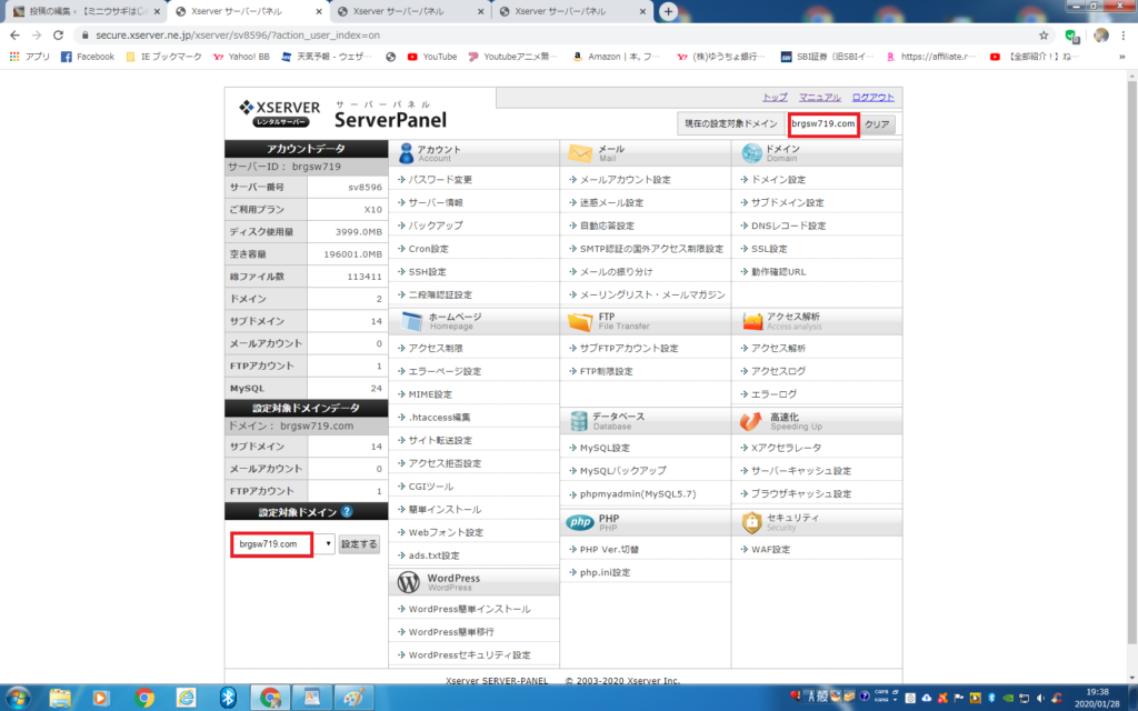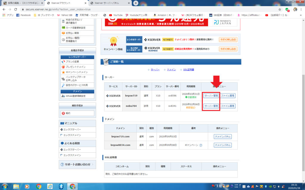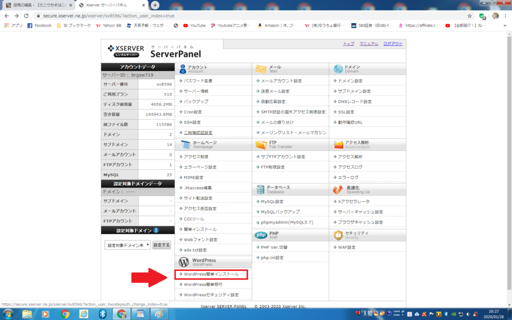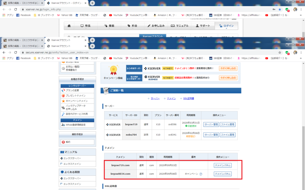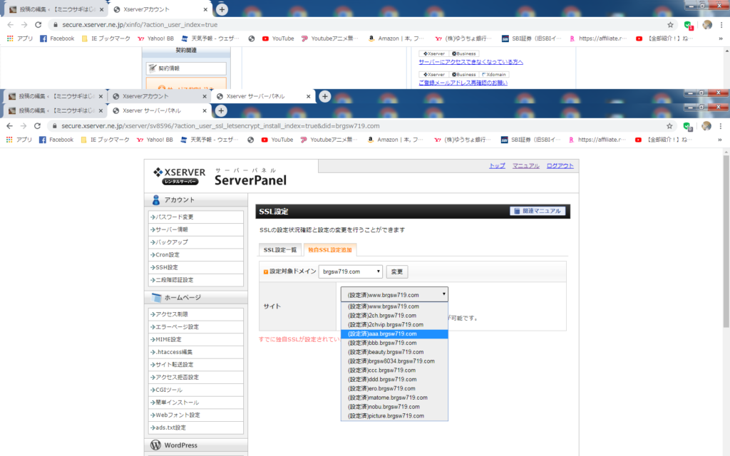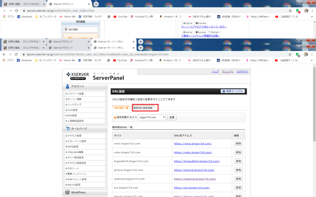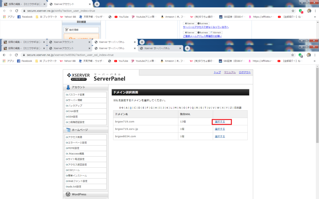 エックスサーバーには独自のSSL(https)が付いています(無料)、先にやっておきましょう。