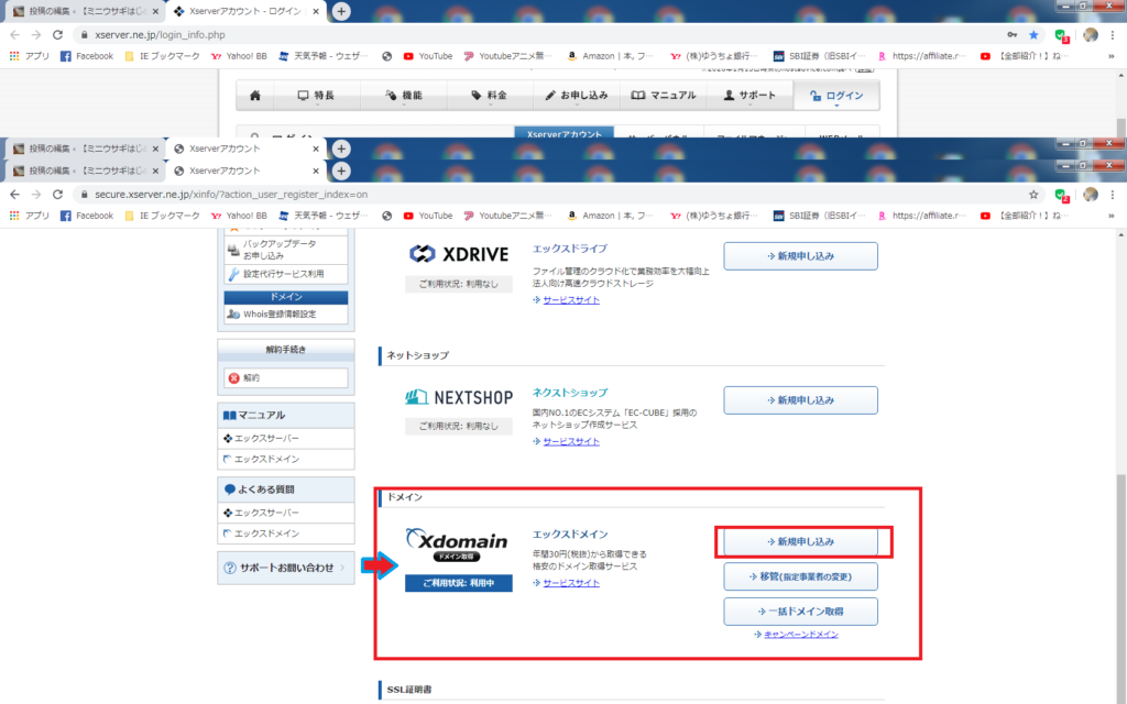 ③下の方にあるエックスドメイン 新規申し込みをクリック