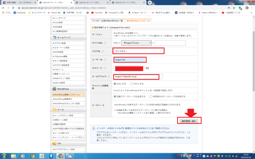Xserverアカウントパスワード コチラを入力