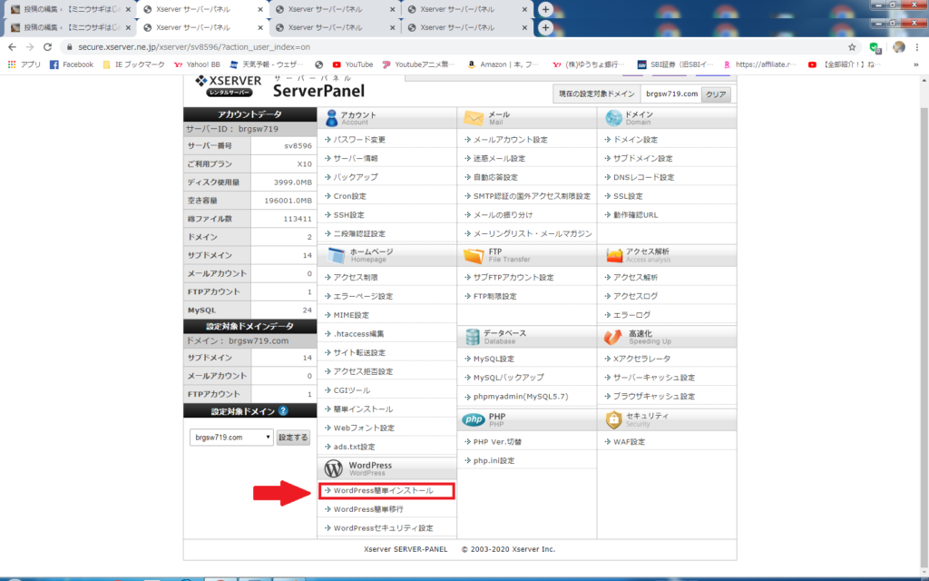 ①エックスサーバーにログイン