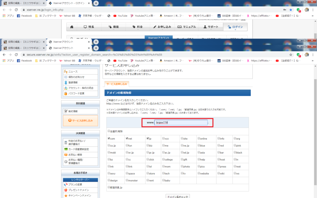 早速エックスサーバーでドメイン&取得しちゃいましょう。