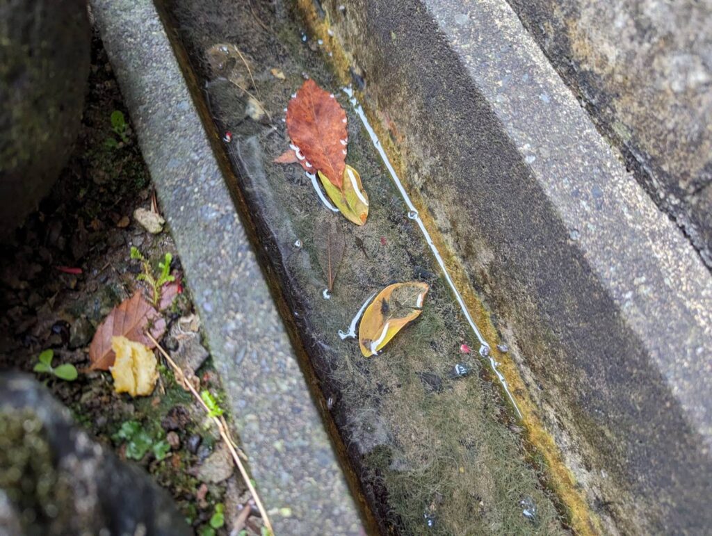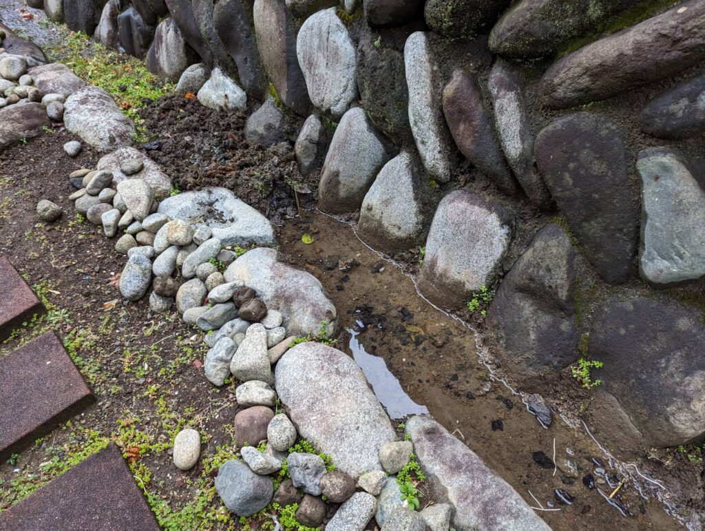 先日、土を撤去した場所に水が!! かなりたまってるw