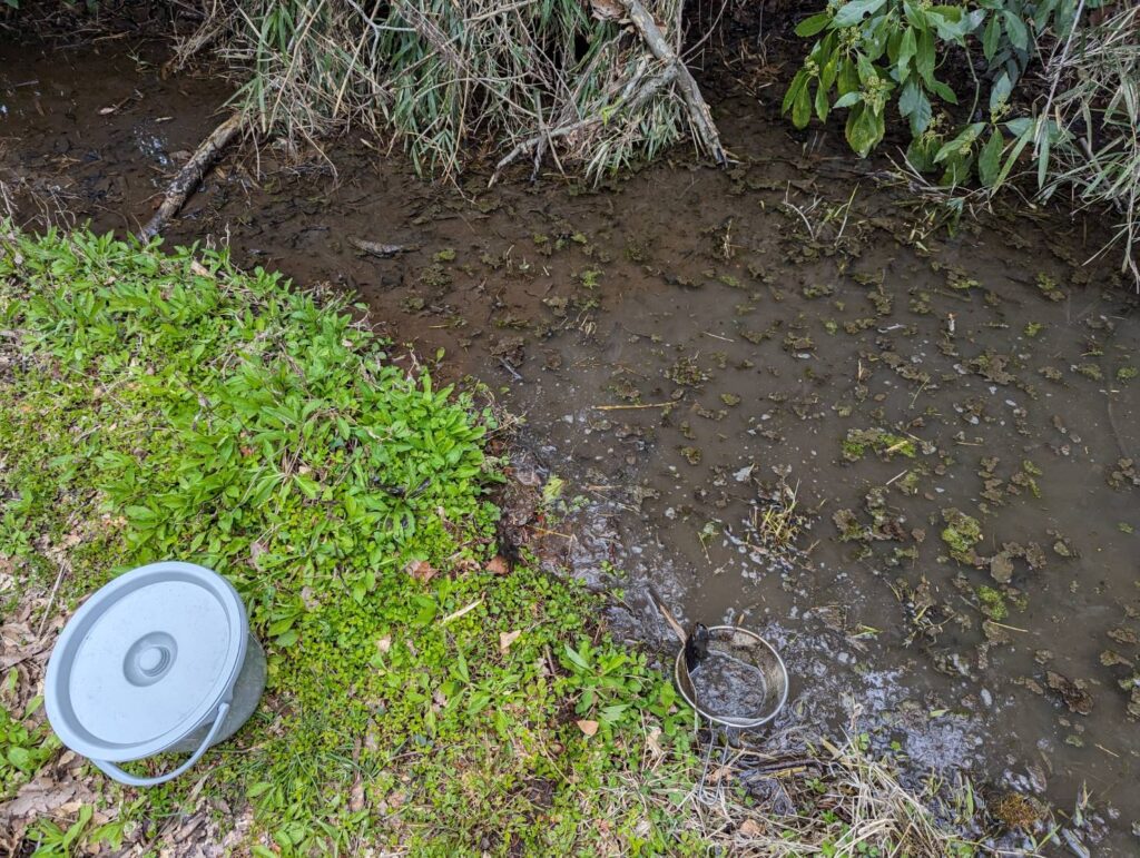次の日は大雨らしいのでって大雨!! なのでオタマジャクシが流されないように・・・
