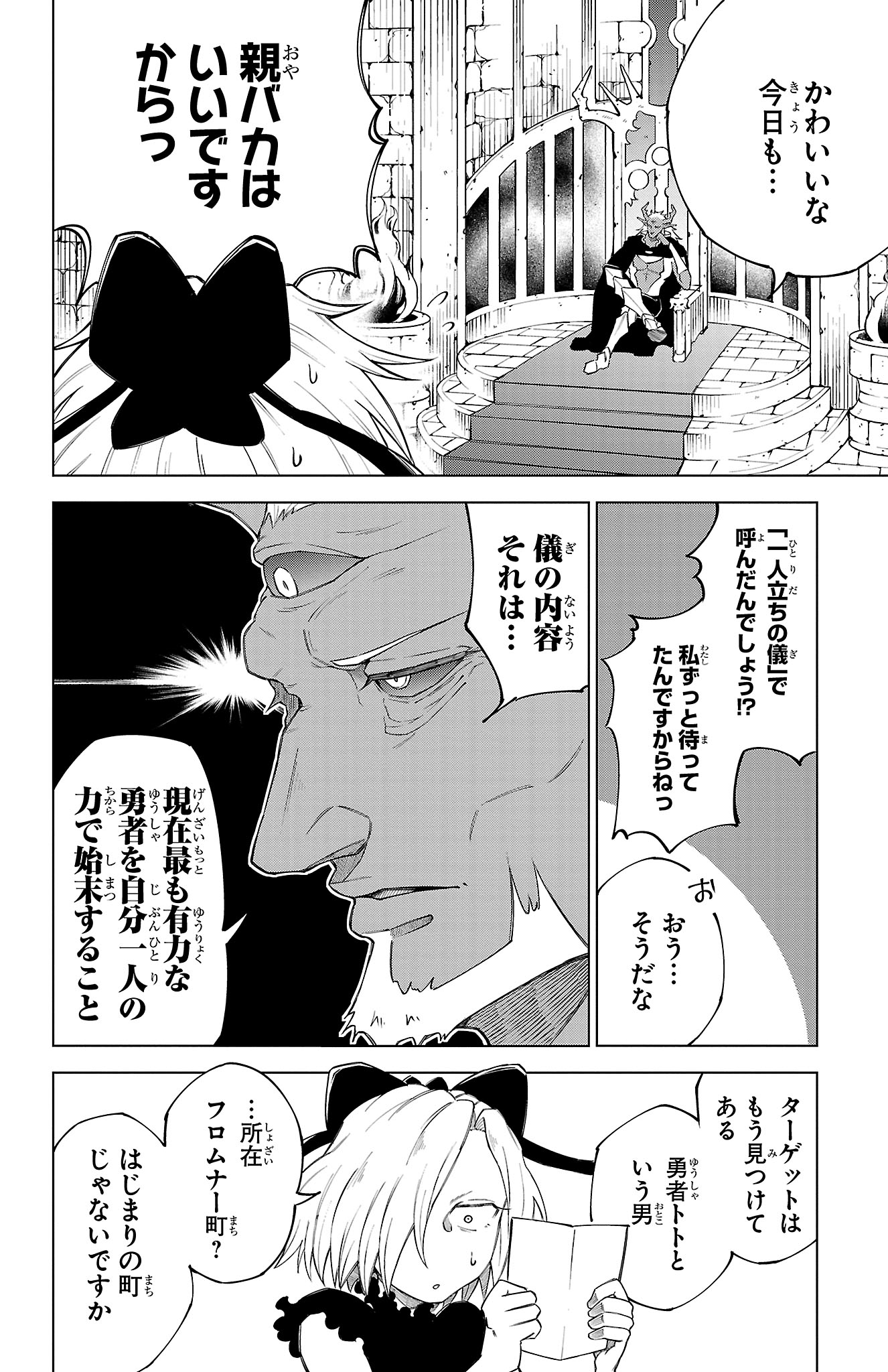 一人前の魔法使いを目指しているという建前でパーティーに入ったが、その正体はトトの暗殺を目論む魔王の娘。甘いものに目がなく旅先では食べ歩きを楽しみにしている。自尊心が高く、とりわけ魔法と自分の可愛さには自信がある。