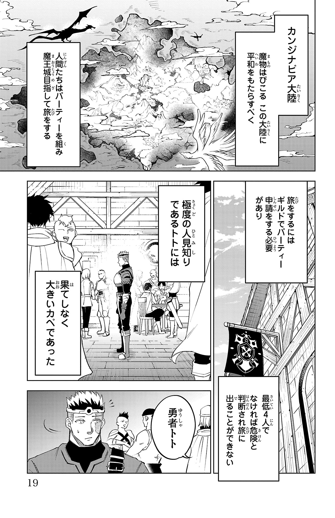 同作は、のりしろちゃんさん原作、雪田幸路さん作画のマンガ。実力はあるが極度の人見知りのためパーティーが組めず、はじまりの町でくすぶっていた勇者トトは、3人の美女、シエル、アネモネ、ゴアから突然パーティーへ誘われるが、彼女たちはトトを殺す気満々だった……という展開。人見知り勇者と、それぞれの目的の為に勇者の命を狙う3人のラブコメディーが描かれる。