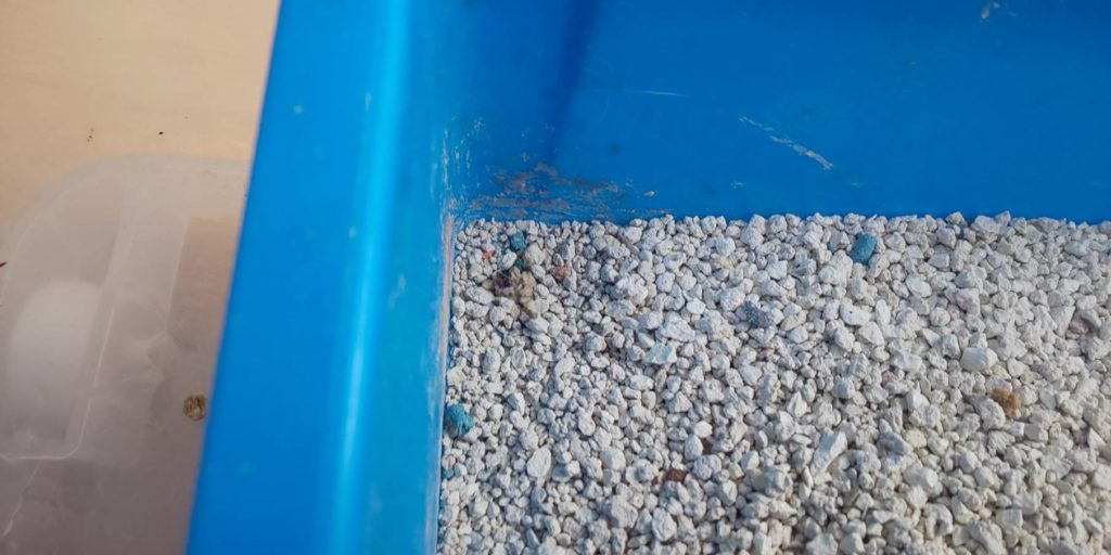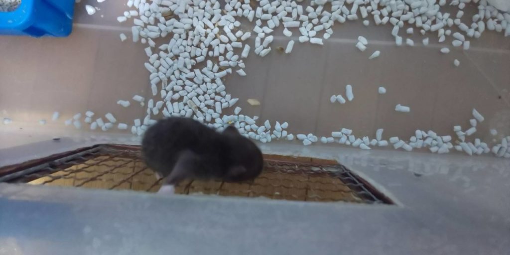 砂場の端っこにオシッコをした跡が・・・・もしかしてトイレおぼえちゃうかな?? 以前飼ったラットはオスだったので、いろんなところにマーキングしちゃったんですよね。 ウンチだけは必ずケースの中に戻ってしてたんですが・・・・
