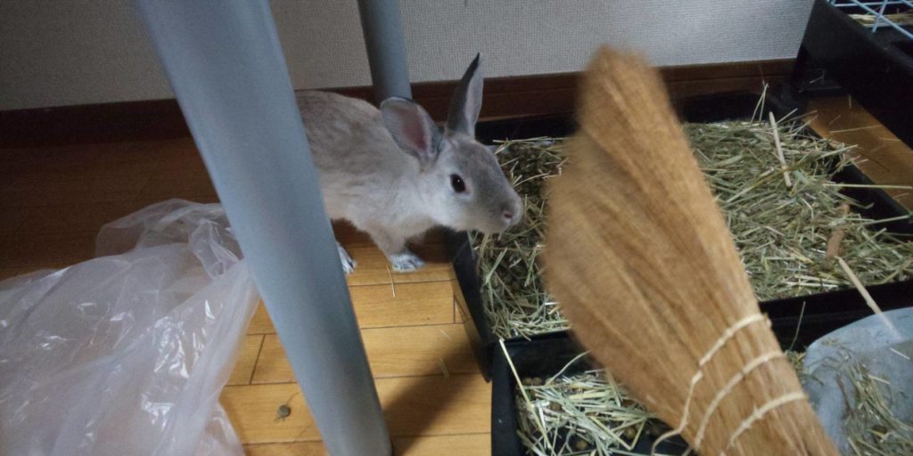 ウサギVS100円均一ホウキ!! 勝者100円均一ホウキ