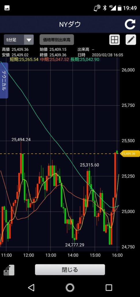 本日の日系平均・NYダウ・円ドルです