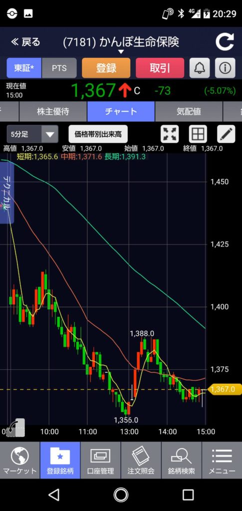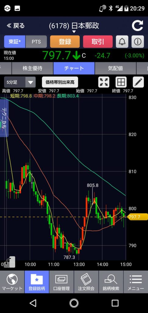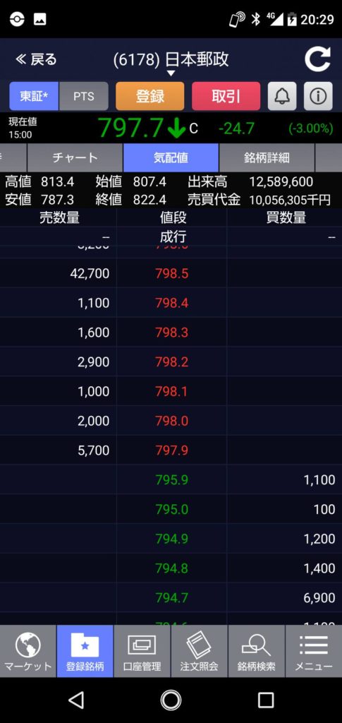 日経平均もマイナス・かんぽ生命&日本郵政がマイナスの中・・・唯一プラスで終了でした。