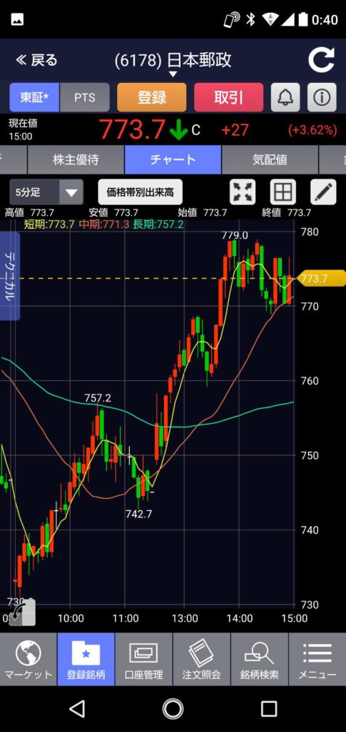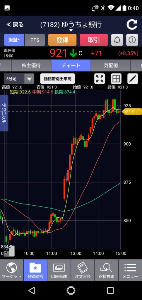 めちゃくちゃやばいくらい上がりましたね!! 前日より-10円安い840円でのスタートまさかの午後からの上昇!!日銀のEFT買いでもあったんですかね!! さすが親玉が政府の株!! 終値は+71円んの921円で終了!! 午後一番に買い入れて置けばよかった~~~