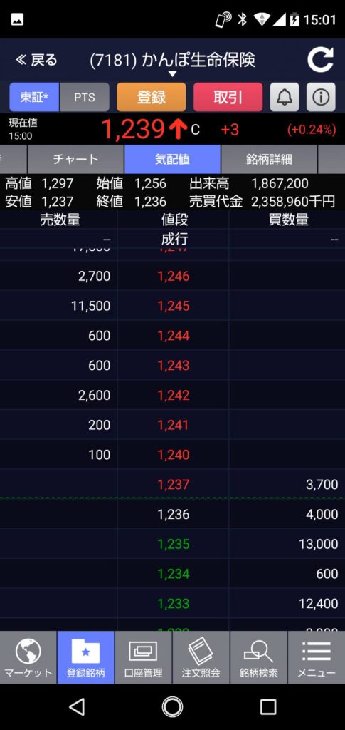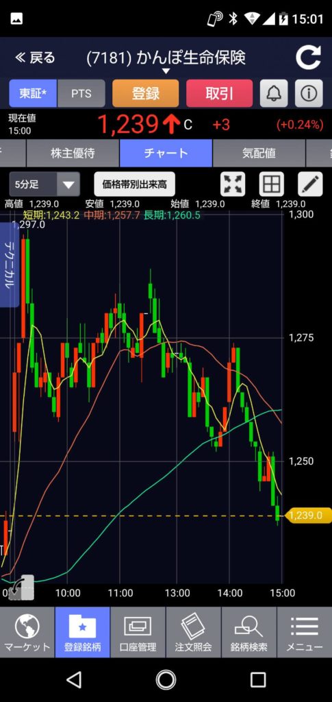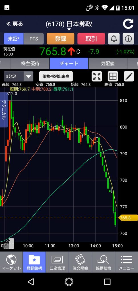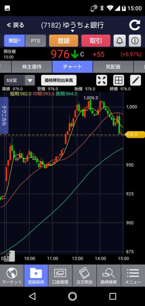 そのあとは日経平均も下がり始め、ゆうちょも同じように下がっていきました。それでも終値は976円と前日より+55円高で終わってよかった良かったです。