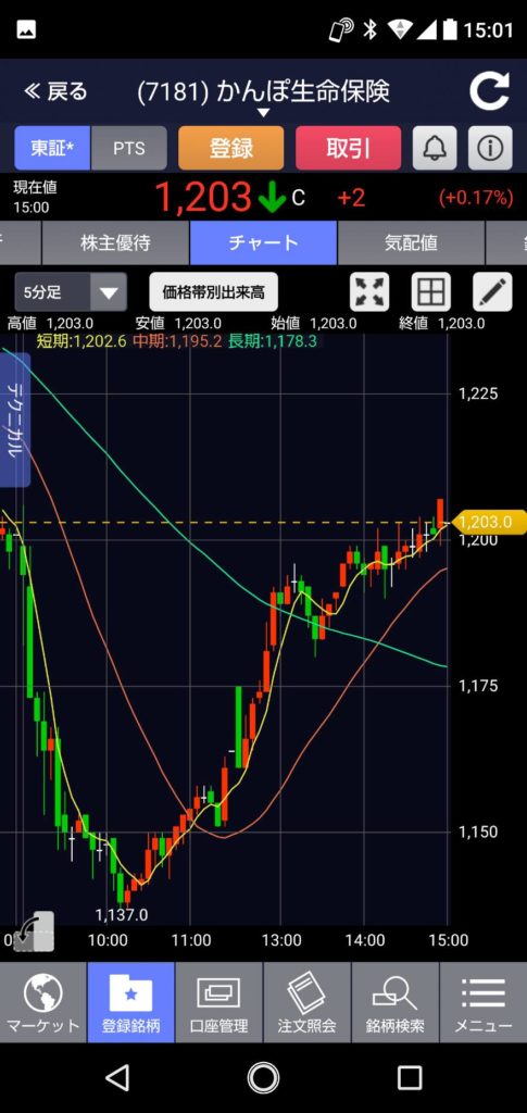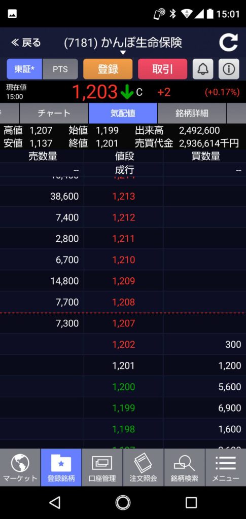 かんぽ生命はスタート同時に-60円くらいまで下がってましたが、最終的には前日とほぼ同じくらいの+2円で終了。
