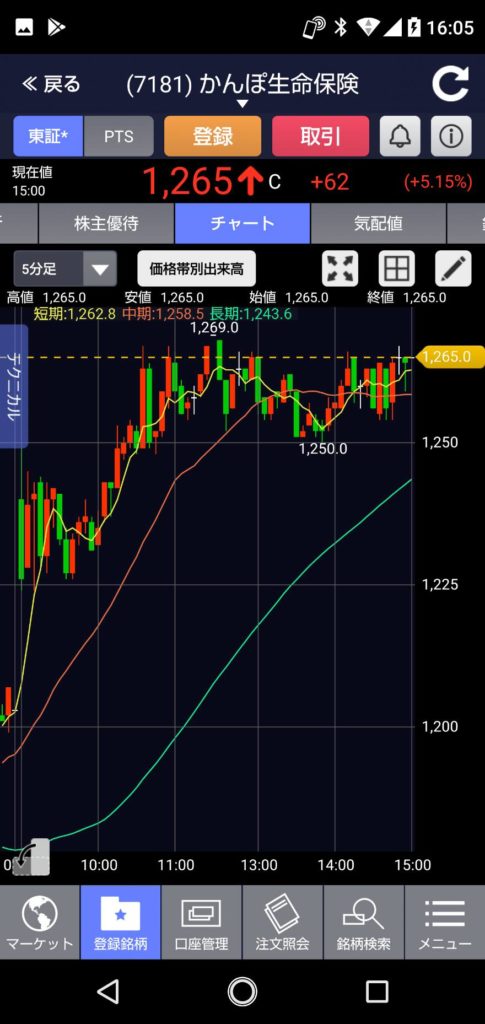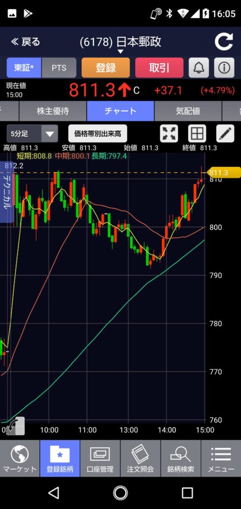 その後1,026円まで上がりますが、午前中は1,020円で終了。