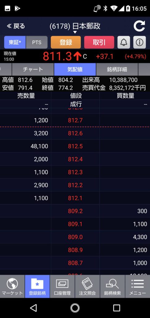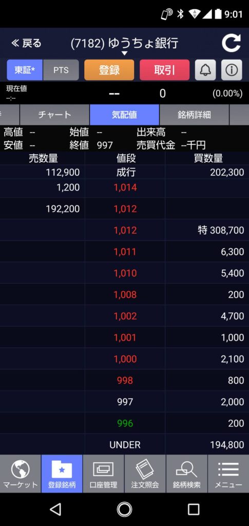 今日のゆうちょ銀行は、スタートと同時に特別気配の1,012円で始まると思っていましたが・・・・前日より+33円の1,030円でスタート。