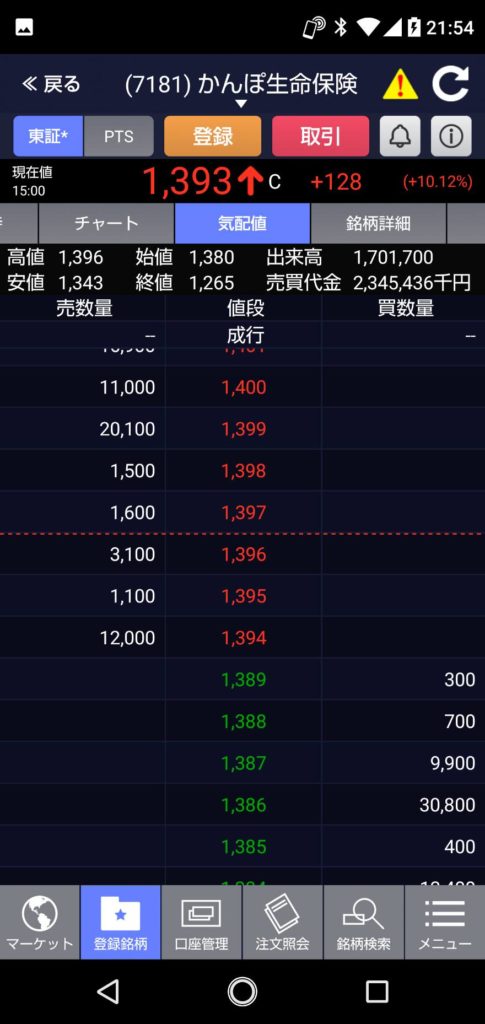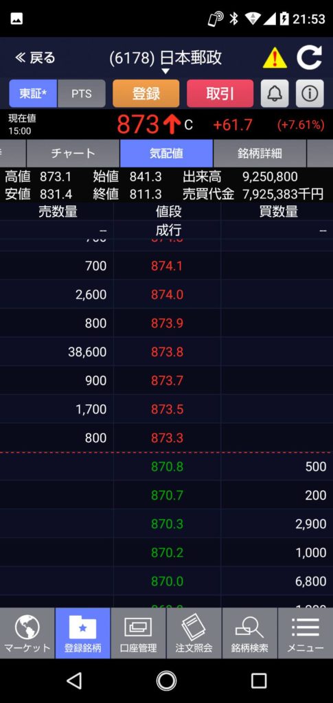 今日のかんぽ生命:+128円 日本郵政:61.7円とかやばいですね かんぽも日本郵政も始まりと共に特別気配になってたし・・・