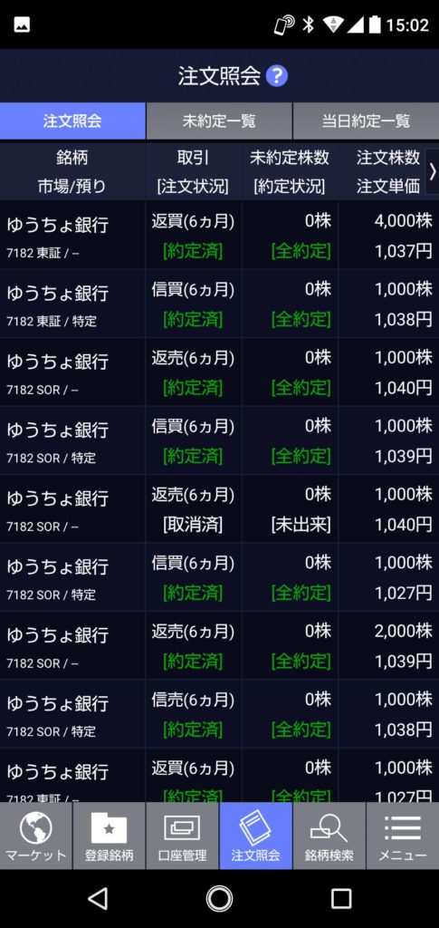 やっぱり約定した後下がりますね・・・・w その後1,026円まで下がってしまった。