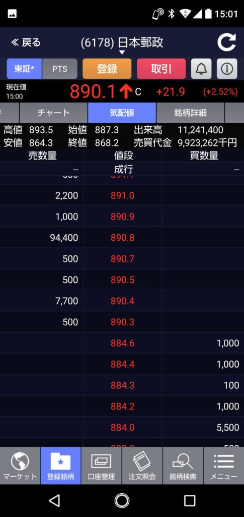 かんぽ生命と日本郵政も前日よりマイナスの時はあったけど、最終的には+20以上で終わってました。