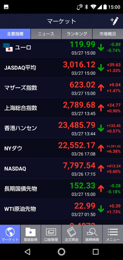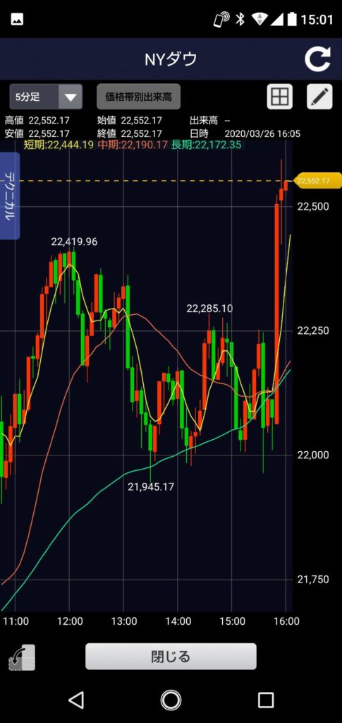 前日のNYダウはコロナ対策に2兆ドル効果で+1,361とすごい上がっていました。