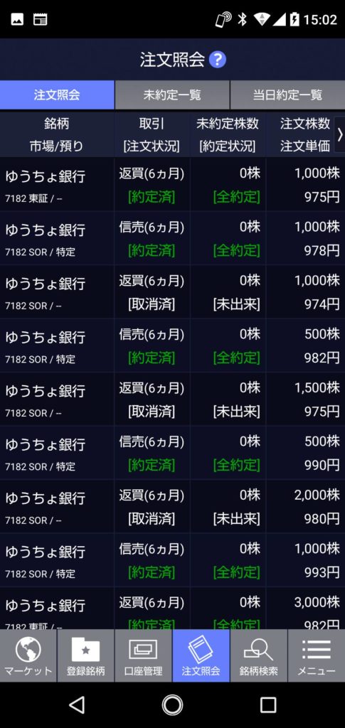 そのあと空売りをちょこちょこしたのですが。なかなか下がらず午後の993円で1,000株空売りを入れて、プラスになったら売ろうと思っていました。