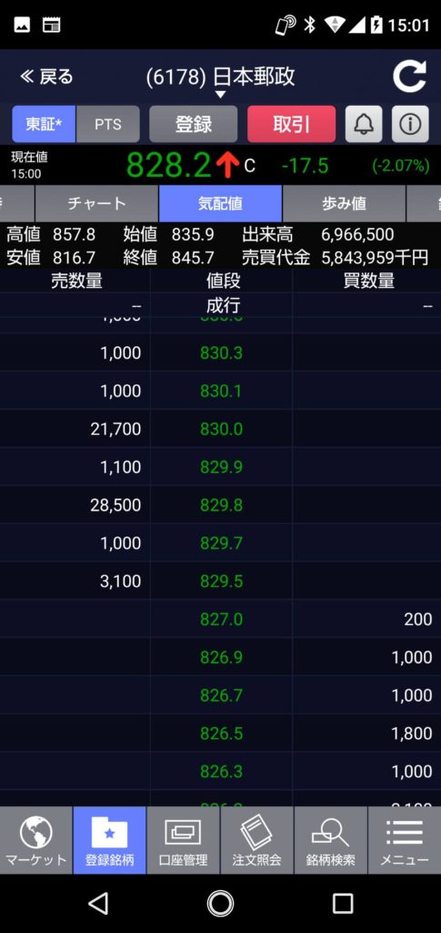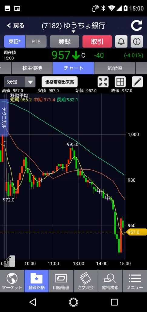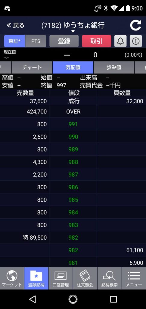 今日のゆうちょ銀行は特別気配982円でしばらく止まっていました。