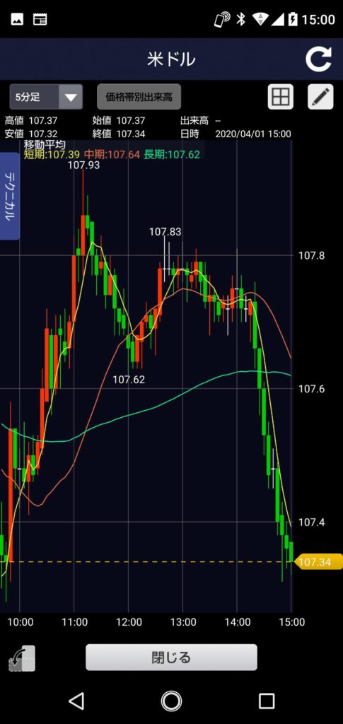 前日より-20円の975円でスタート。上は985円くらいの下は972円まで下がりますが、徐々に上がり始めて984円くらいで午前中は終了