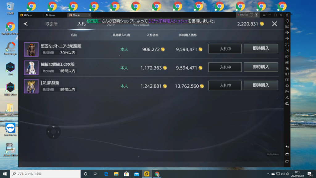 お昼からの放置狩りの前に入札…・しておきましたが、呆気なく上乗せされていました。無念ですじゃ~~ まあすごい安く購入しようとしていますが・・・・無理ですね。