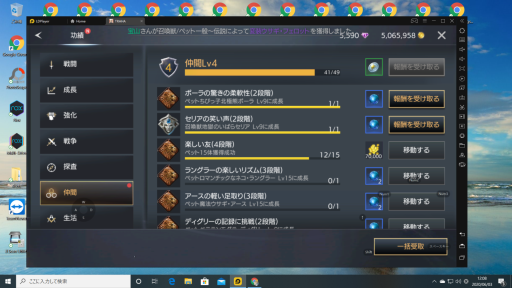 2時間でどれくらい上がるのかな? 40レベル超えたからあまり上がらなさそうなんですが・・・効率よくレベル5の採集をしてみます。