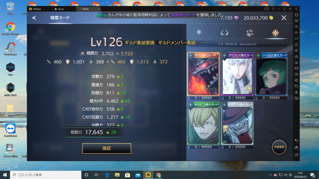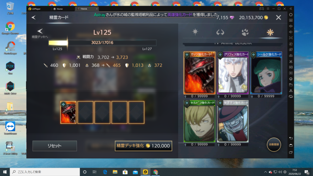 伝説の精霊強化カード!! 何か2連続伝説級が・・・・・ というわけで精霊レベルが126に!!