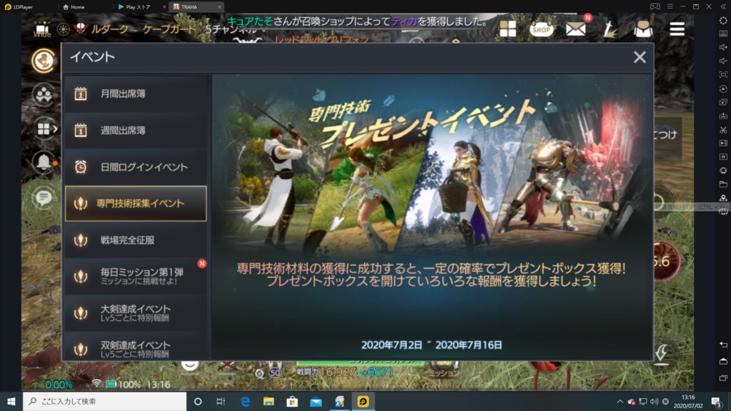前回のメンテナンスも12:00に終わっていたので、大体それくらいに合わせたらINできたのが12:04・・・