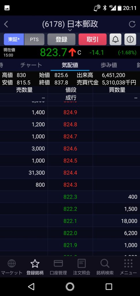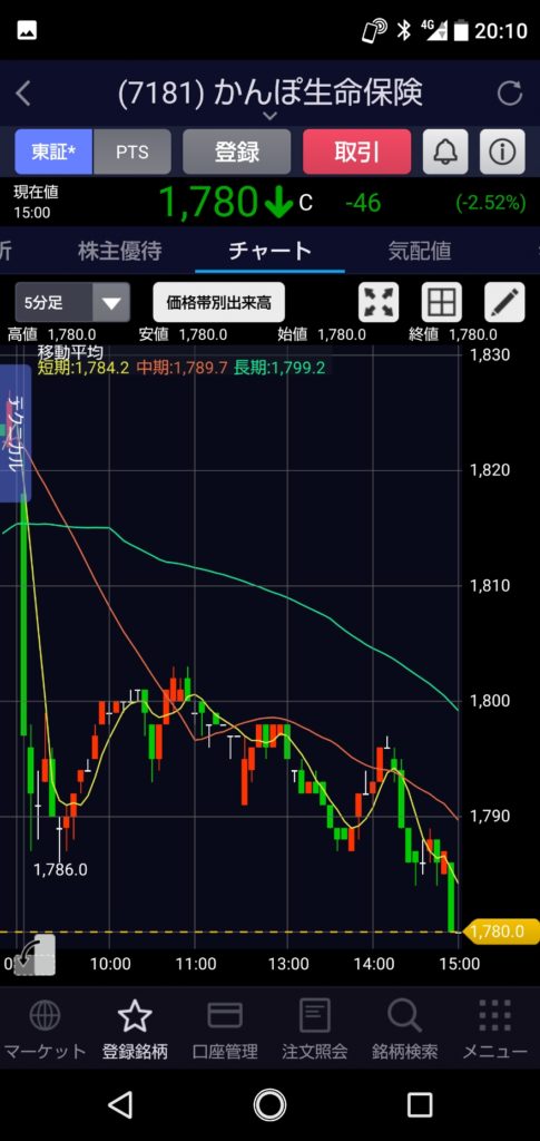 日本郵政も・・・かんぽ生命も二日前はすごい上がってたのに・・・一気に下がって来ましたね。