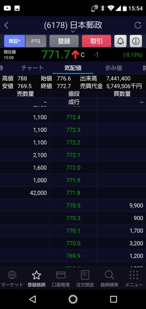 一方・・・日本郵政は、朝一最高値になったんですが・・・ゆうちょ銀行と同じで一気に下落。