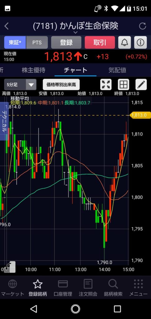 最近午後一番で最安値から上昇していたので今回もって思ったんですが・・・・843円までしか上がらずドンドン下がっていきました。