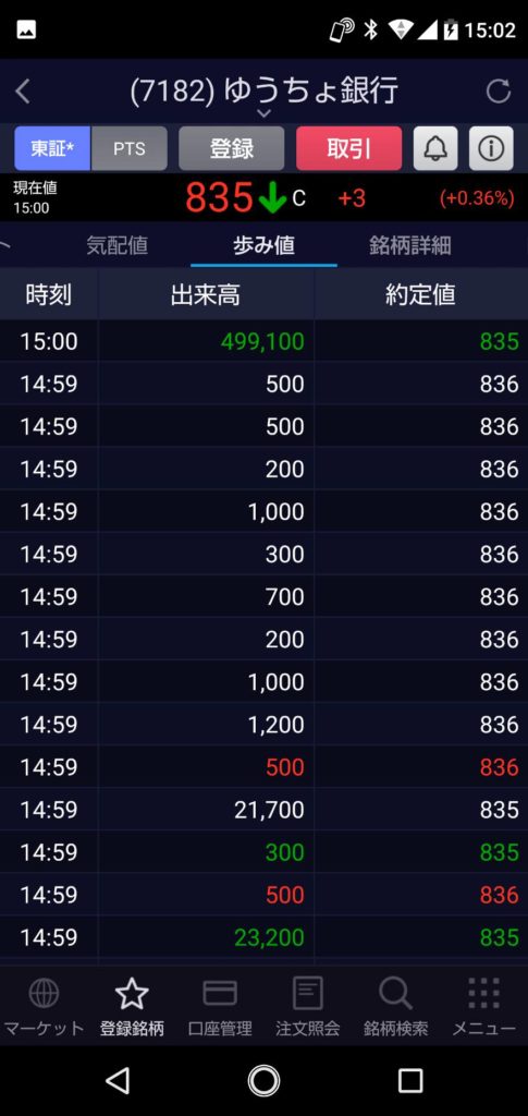 午後からは843円が最高でその後、14:00位にまた最安値の835円まで下落。