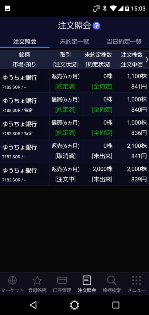 午前10時くらいに844円から841円まで下がったの・・・また下がるかなと思って少し売却。