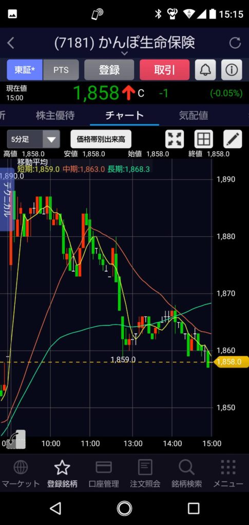 本日のかんぽ生命はずっとプラスですごいと思ったんですが・・・・最終的にはマイナス1円で終了か。