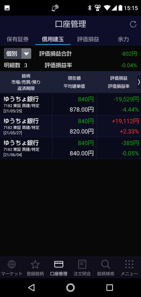 843円の空売り分もあったからどうしようか悩んでいたんですが・・・840円 841円と下がって来たので841円で買い戻し。