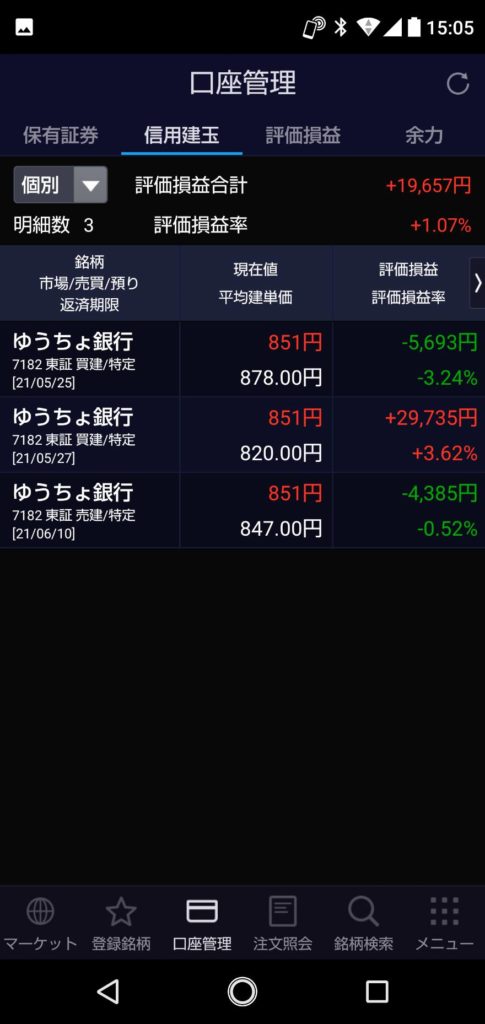 午後になってだんだん上がり始めたので、14:00過ぎくらいに売却!!