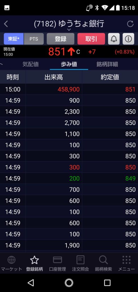本日のゆうちょ銀行は、前日より4円高い848円でスタート。 いつも通り?始まってからすぐに下がり始めて10:00前には本日最安値の840円まで下落しました。