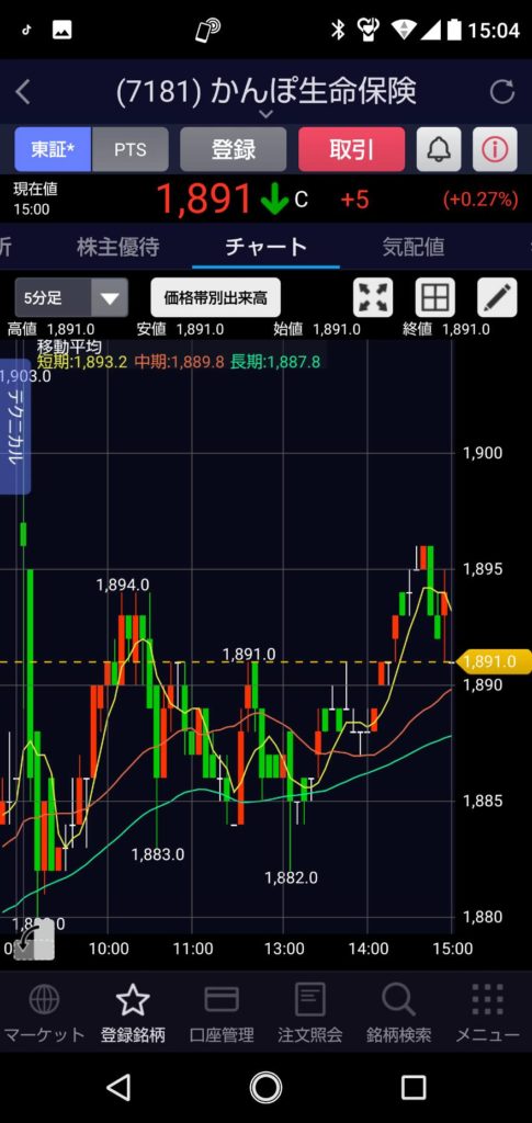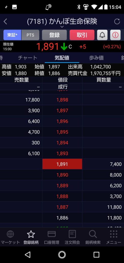 かんぽ生命は1,900円越えて1,903円まで上がっていましたね。