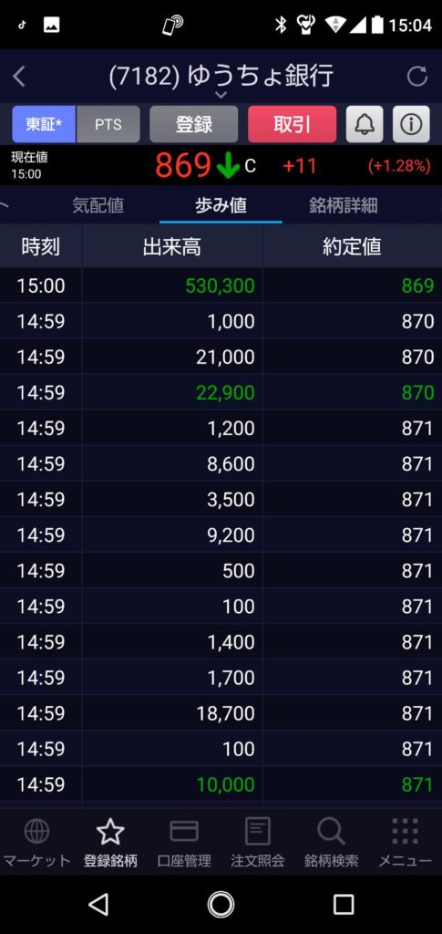 本日のゆうちょ銀行は、前日より10円高い868円でスタート。
