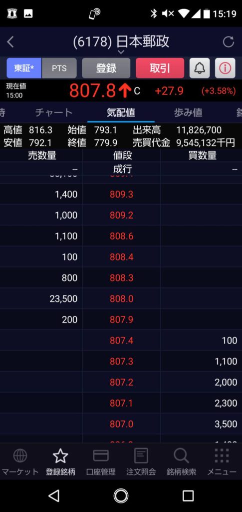 親会社の日本郵政も便乗してかなりプラスになっていましたね。 コチラも久しぶりの800円台じゃないのかな?