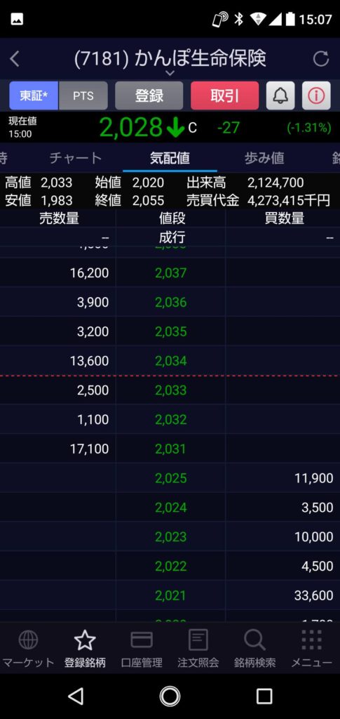 持ち直して2,028円まで戻していますが・・・それでもマイナス27円か。