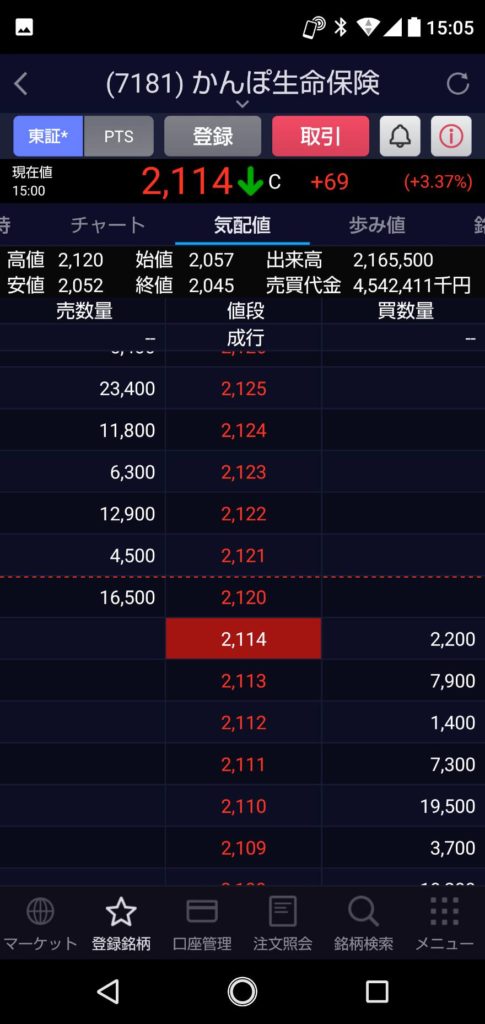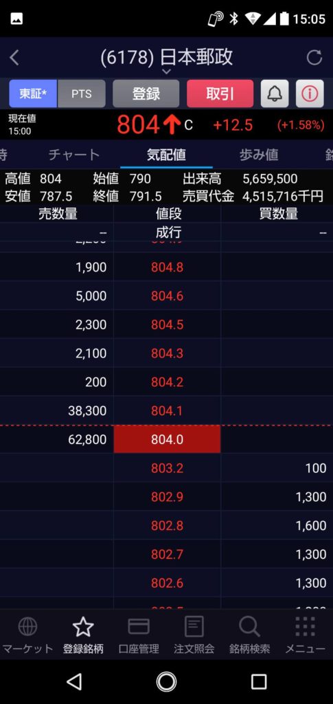 本日のかんぽ生命ヤバイ!! 先日の自社買い入れニュースの時の価格近くまで戻ってるジャンww